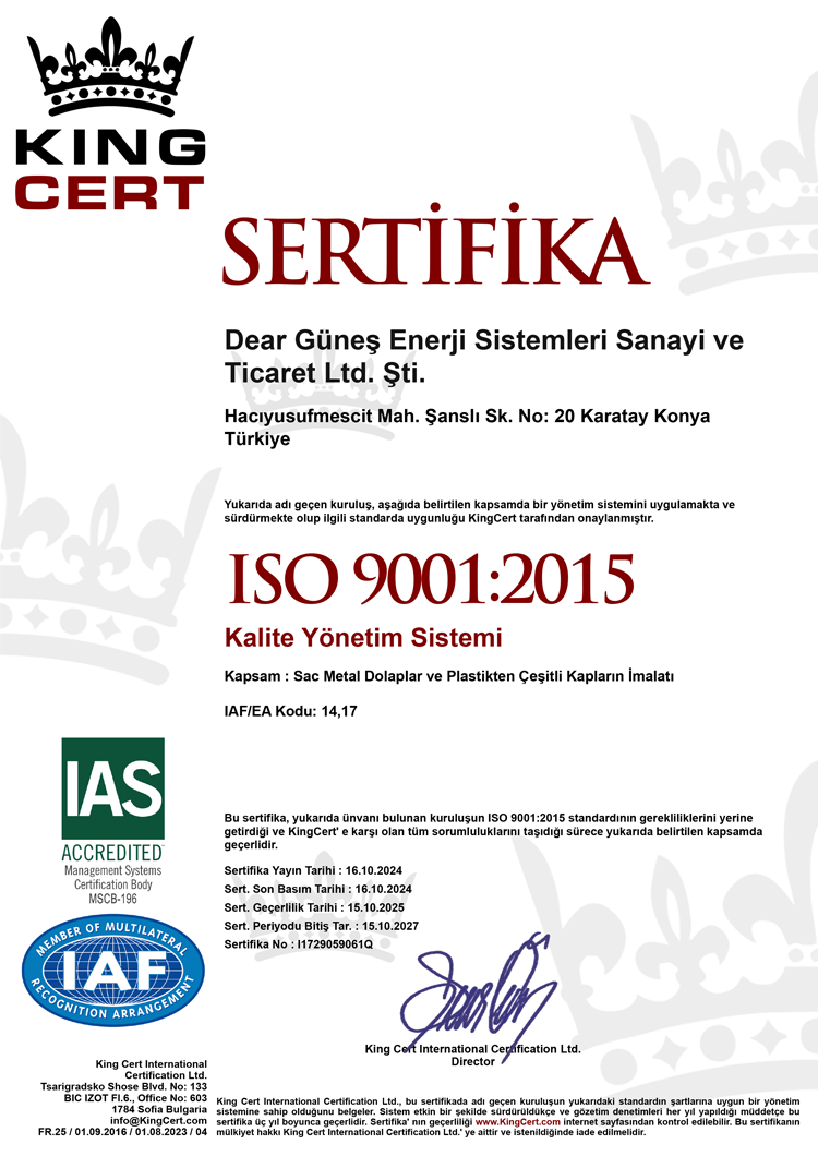 - İstenilen renklerde elektro statik fırın boya ile boyanmaktadır.